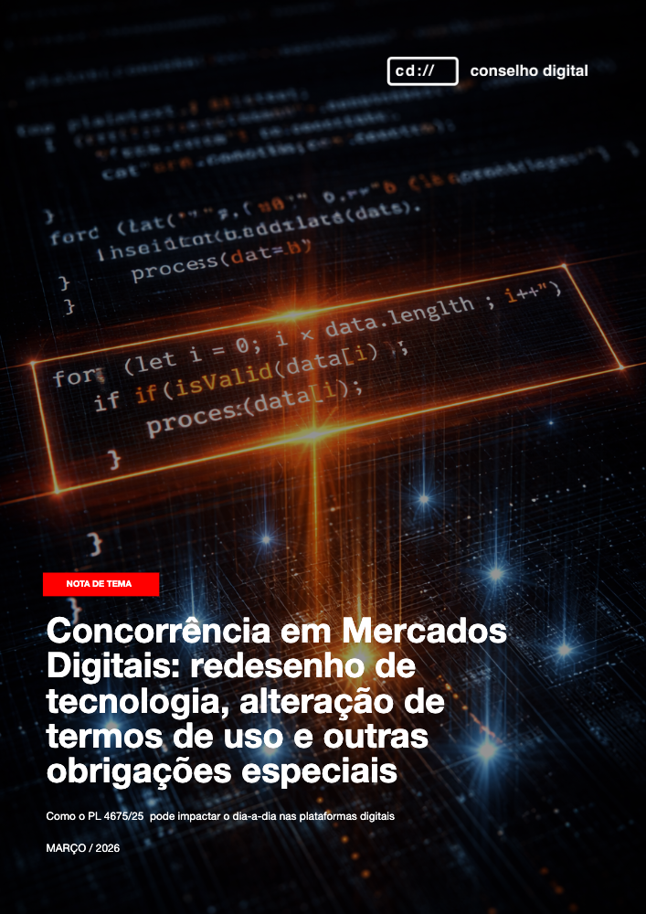 Copyright© 2019-2024, Conselho Digital do Brasil. Todos os direitos reservados. Todos os textos, imagens, gráficos, animações, vídeos, músicas, sons e outros materiais são protegidos por direitos autorais e outros direitos de propriedade intelectual pertencentes ao Conselho Digital do Brasil, ou aos seus associados sob regime de licenciamento. O Conselho Digital do Brasil é, também, proprietário dos direitos autorais de desenvolvimento, seleção, coordenação, diagramação e disposição dos materiais neste site. É expressamente vedada a cópia ou reprodução destes materiais para uso ou distribuição comercial, a modificação destes materiais, sua inclusão em outros websites e o seu envio e publicação em outros meios digitais e físicos, ou de qualquer outra forma dispor de tais materiais sem a devida autorização, estando sujeito às responsabilidades e sanções legais.